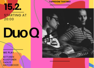 Mallassepät Lietsalantie 11, Naantali, FinlandTakomo Live / Duo Q / Ilmainen sisäänpääsy! Esiintyminen alkaa kello 20:00. ”Duo Q on perustettu 2000-luvun alussa opiskeluaikoina. Musiikki on leppoisaa ja melodista coveria laidan täydeltä. Vuosien saatossa soittoon on kertynyt monenlaista, sekä suomeksi että englanniksi. Sit back and enjoy! - Jussi & Timo” Suljemme keikan jälkeen klo 23:00